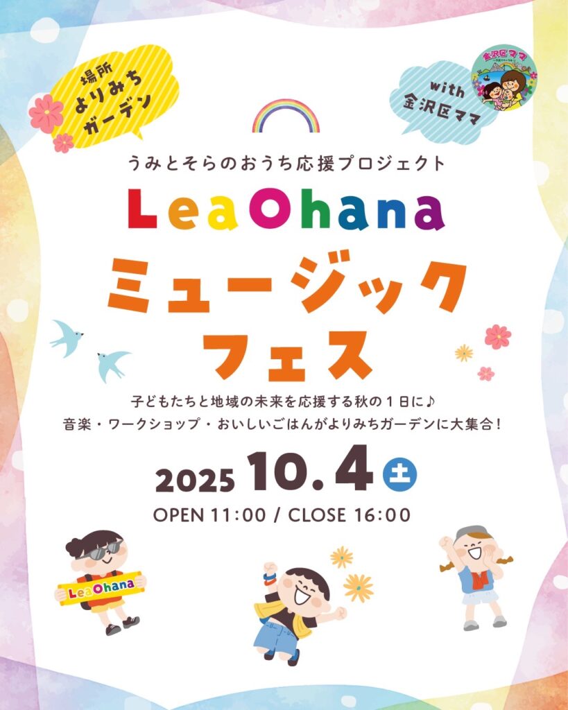 終了しました2025年10月4日かなざわnewcal🌈うみとそらのおうち応援プロジェクト🌈 LeaOhana🌈ミュージックフェス with 金沢区ママ