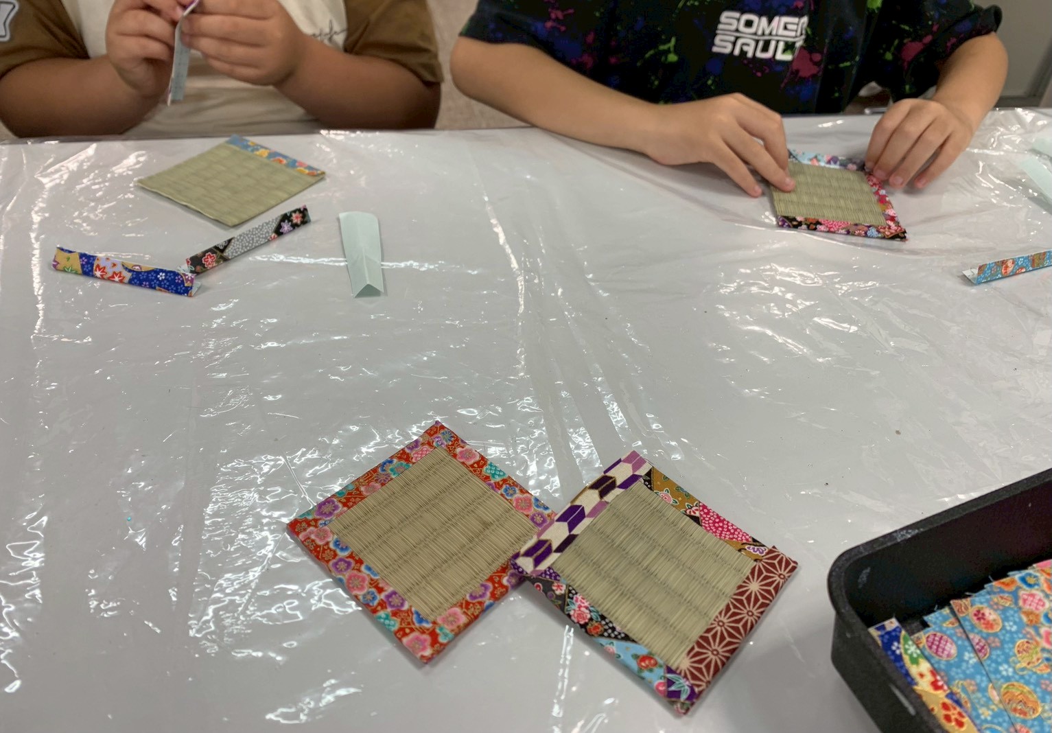 「磯子区子育てコミュニティコスモス」のブースでは、区内の畳屋と連携して、畳の端材をリメイクするコースターづくりが行われていました。地域の魅力とSDGsに着目したワークショップです。